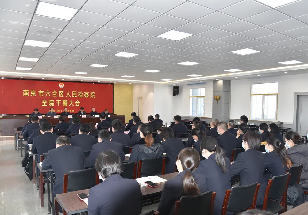 11月23日,六合区检察院召开全院干警大会,宣布主要领导职务调整的决定。市院党组书记、检察长黄利民,区委副书记张纲,市院党组成员、政治部主任杨继栋,区委常委、组织部部长马献军,区委组织部,市院组织人事处等相关部门负责人,六合区检察院全体干警参加会议。